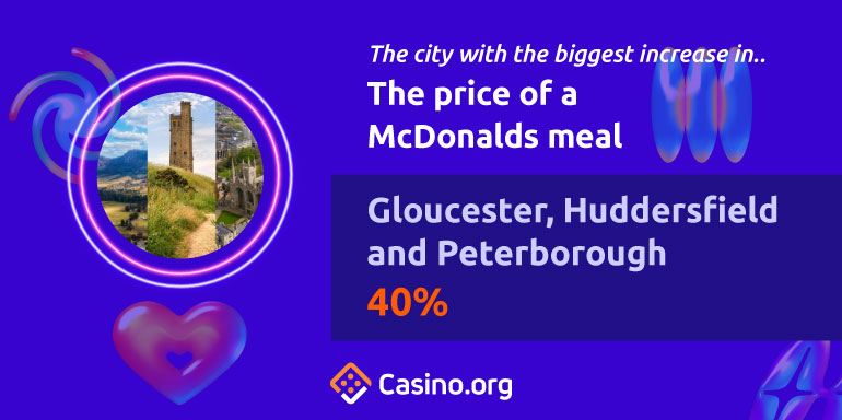 The price of a McDonalds meal – Gloucester, Huddersfield, Peterborough (40%)