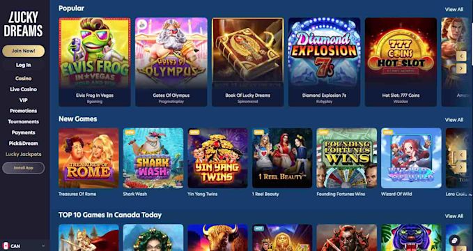 Bei Lucky Dreams erwartet dich eine satte Spieleauswahl bester Casino Games mit Echtgeld von renommierten Softwareanbietern. Von aufregenden Spielautomaten bis hin zu klassischen Tischspielen ist hier für jeden etwas dabei.