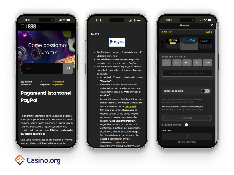 💡 L'opinione dell'autore di Casino.org: "Se un PayPal casino è veloce sia da desktop che da mobile e il servizio clienti è efficiente, allora anche l'esperienza dell'utente sarà senza dubbio positiva".
