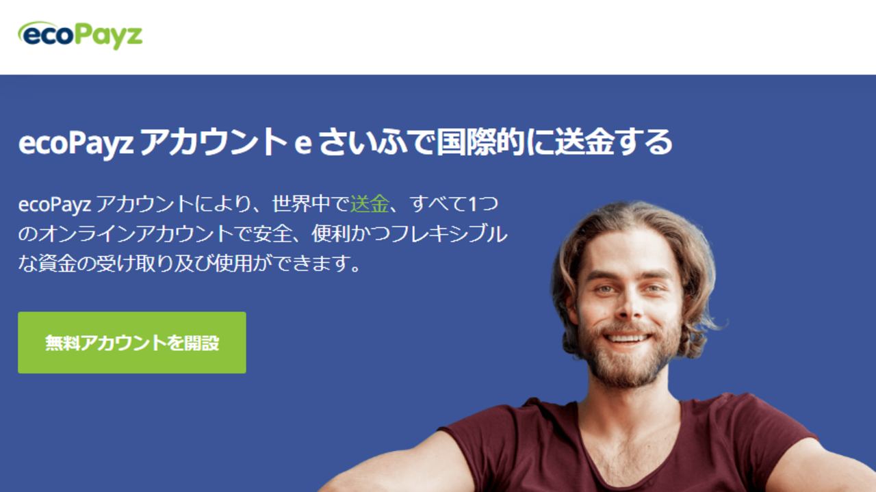 エコペイズの登録は完全無料、ほんの数分で完了します。アカウントの作成方法は以下の流れで行います。①エコペイズ公式ページで「ecoPayzアカウント」をクリック②「無料アカウントを開設」をクリック