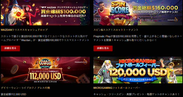 1X2Gaming / AsiaGaming / Microgaming / MPlay / NetEnt / Nolimit City / One Touch / Oryx Gaming / Pariplay / Play’n GO/ PushGaming / Wazdan / WoohooGaming / Yggdrasil Gamingなど多数ライブカジノ