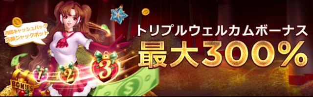 | トリプルウェルカムパッケージボーナス | 300%最大$1000 | 30倍 | ボーナス額の5倍 |