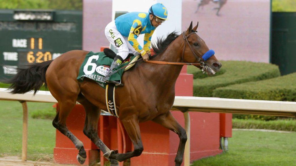 The Kentucky Derby won the second jewel of horse racing’s Triple Crown on Saturday, easily beating a small field to win the Preakness Stakes by seven lengths.