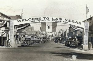 Las Vegas built a wooden arch in 1929 to impress visiting federal dam officials Federal leaders rejected the city due to local vice and built Boulder City instead No other official welcome signs were built until the famous neon version in 1959...