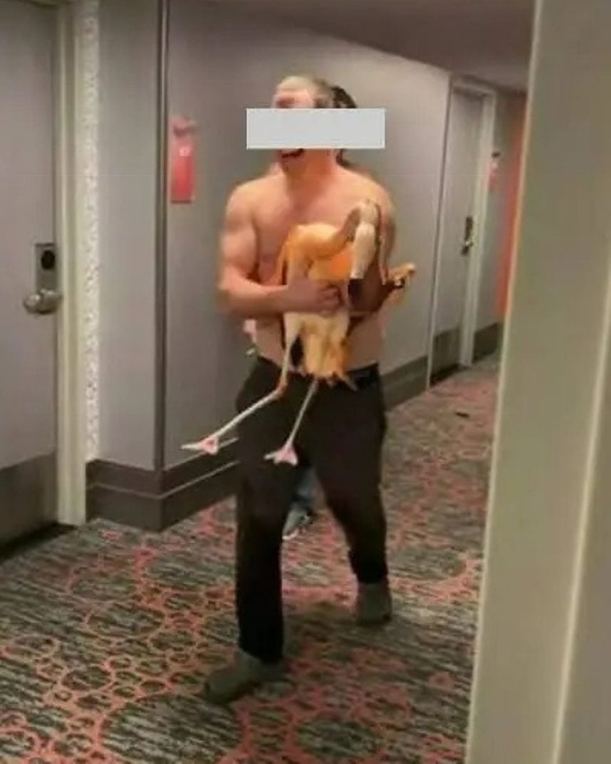 - Mitchell Fairbarn, 33, allegedly choked and threw the bird, named Peachy, in his hotel room