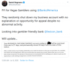 @gilazam Minorities are a protected class and you raising the prospect of BoA terminating minorities’ accounts is fairly bizarre and unconnected in any way to DN’s account closure. Gamblers are not a protected class and this article does a pretty solid job laying out the rationale for why the bank probably canceled his account. I don’t agree with the decision, but I certainly understand the logic. If you can’t, then you’re just being willfully ignorant.