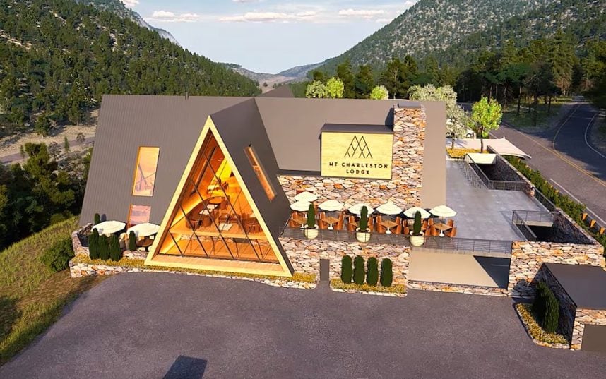 Construction is finally underway on the replacement for the Mt. Charleston Lodge, more than four years after a 2021 fire destroyed the structure. The new lodge, approved at just under 11K square feet, will feature a two‑story A‑frame design with an expanded restaurant, outdoor patio, and a bi‑level parking garage.