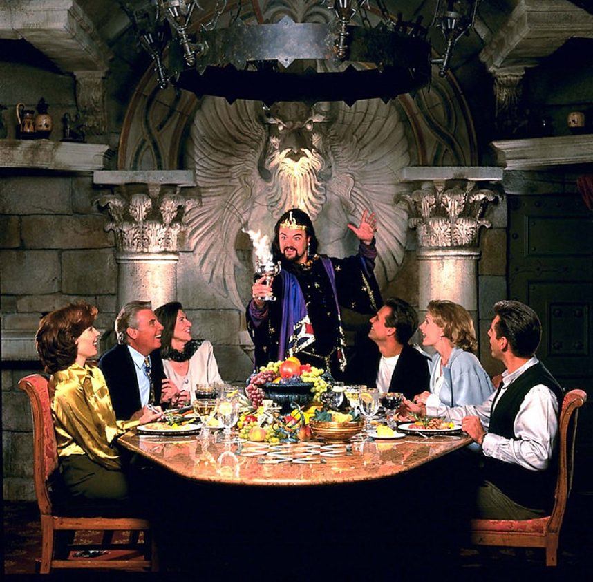 Torch-lit catacombs then led to a series of 10 dining chambers styled as medieval banquet halls. Here, guests were served three-course gourmet meals with unlimited wine and entertained by a wizard who performed comedy, magic and song between courses.