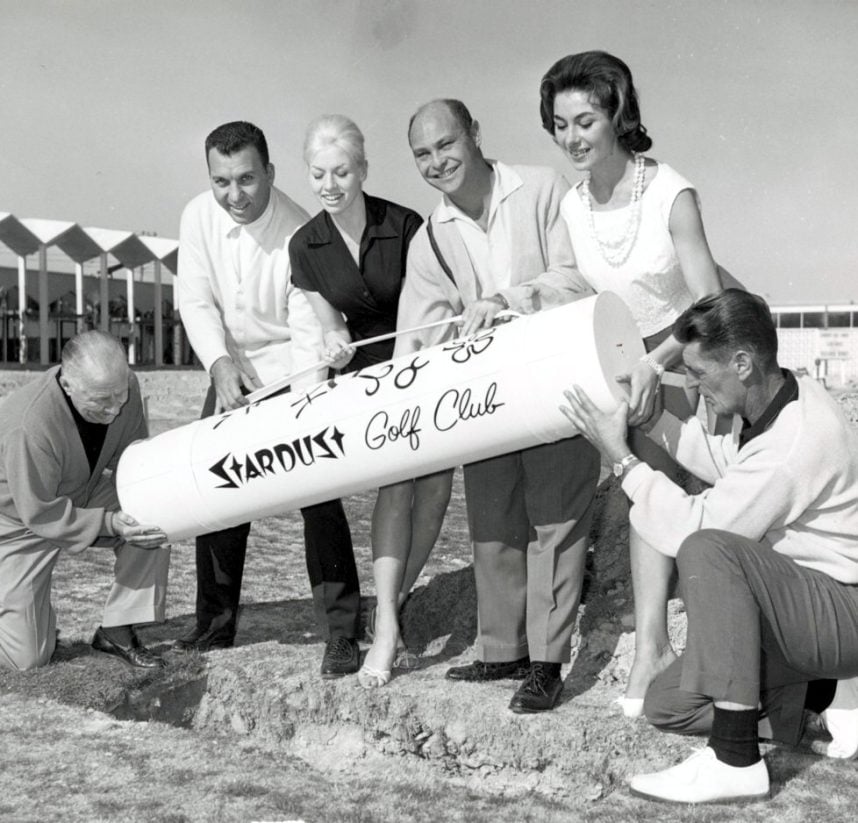 1961 Capsule: Buried on September 14 on the Stardust’s new golf course, this included a 1961 Stardust brochure, room key, gaming chip, matchbox, and a list of current hotel executives. It was scheduled to be opened 100 years later.