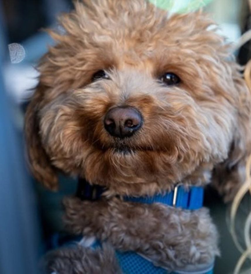 - A two-year-old goldendoodle abandoned at a Las Vegas airport was adopted by one of the officers who helped rescue him.