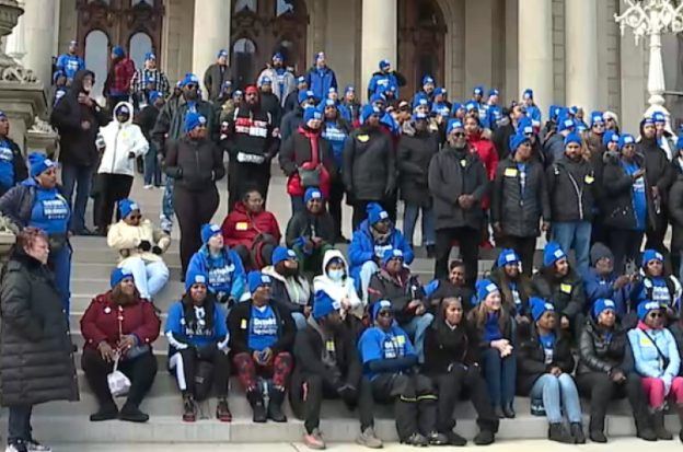 Detroit Casino Workers Rally at Capitol for Minimum Wage Bill Support Amid Strike