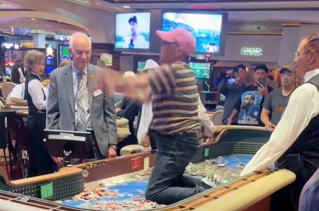 HOLY CRAPS! Woman Climbs Atop Reno Casino Table to Chuck Chips