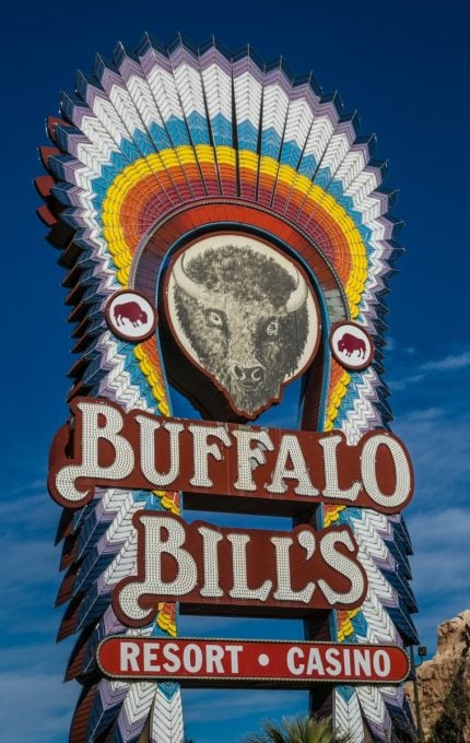 The marquee for Buffalo Bill’s in nearby Primm, Nev. clearly depicts a bison, not a buffalo. This native-to-America species has massive shoulder humps, dense beards, and short horns that curve upward.