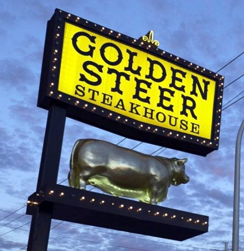 A steer is male bovine that’s been castrated. Sending the animal to the choirboy program prevents the growth of the full horns and musculature on prominent display in the Golden Steer’s fiberglass model out front.