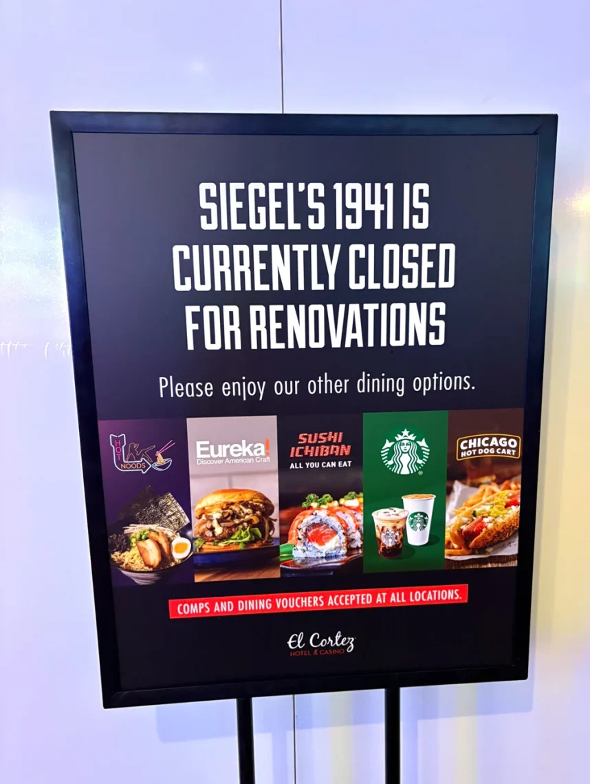 Siegel’s 1941 has closed at the El Cortez for a renovation and partial rebrand. When it reopens, reports Vital Vegas, it will serve breakfast and lunch under the same name — an homage to the year the casino opened and one of its owners, Benjamin “Bugsy” Siegel, from 1945-6 — and then become Alex Prime, a New York steakhouse, starting at 5 p.m.