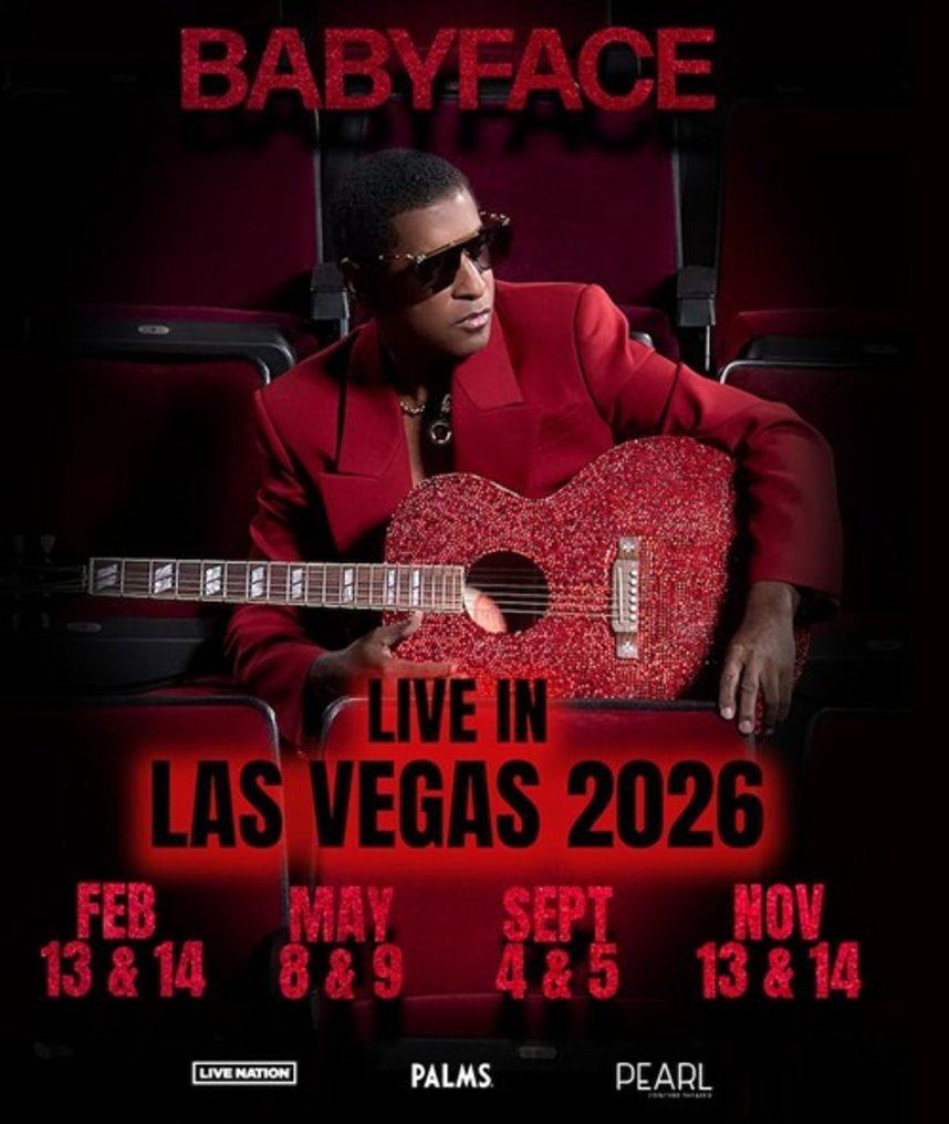 R&B superstar Babyface (real name: Kenneth Edmonds) will continue his ongoing residency at the Pearl Concert Theater at the Palms Casino Resort next year. His eight just-announced dates fall across four holiday weekends: