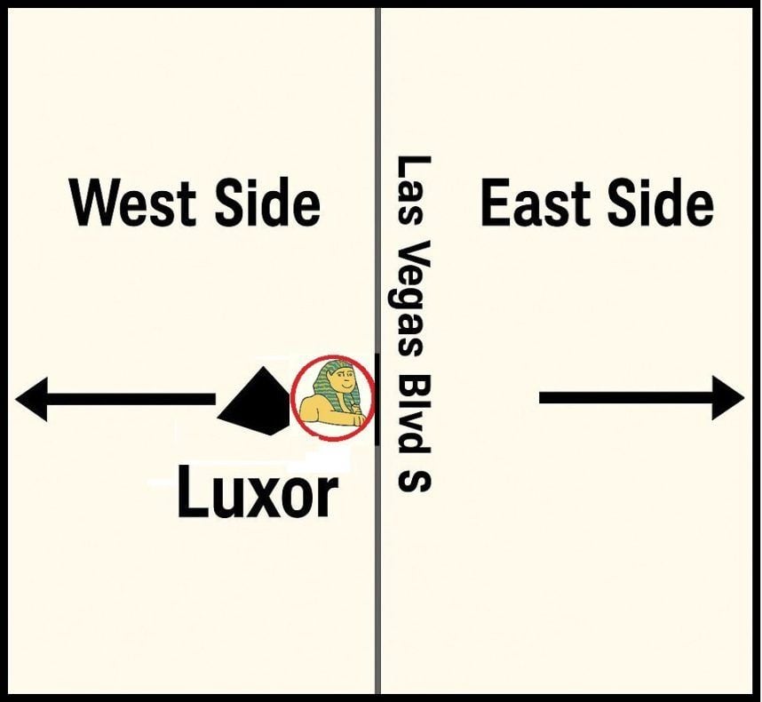 The Sphinx’s alignment was chosen for maximum exposure to traffic on the Las Vegas Strip. (Nobody would see it if it faced away from the Strip, and only half as many people would if it faced entirely north or south, the directions in which traffic flows on Las Vegas Boulevard.)