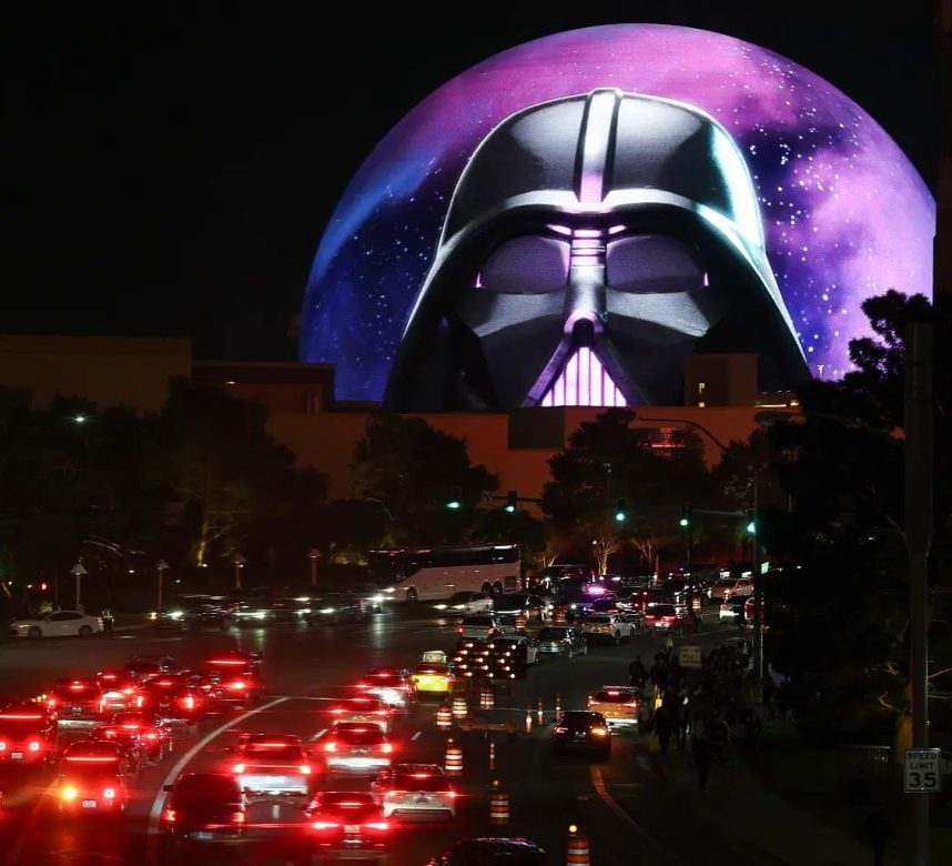 On Wednesday night, the globular wonder’s 580,000‑square‑foot “Exosphere” was re‑skinned as the brick‑built space fortress with the iconic trench from the original 1977 “Star Wars.” The activation was designed by Sphere Studios in collaboration with The LEGO Group, Disney Consumer Products, and Lucasfilm.
