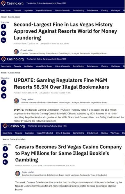 Regulators later alleged that Resorts World, Caesars and MGM knowingly allowed Bowyer to lose millions at their tables from 2017 to 2024 despite unverifiable funds. They said his presence exposed systematic negligence across the Strip, where casinos prioritized revenue over compliance.
