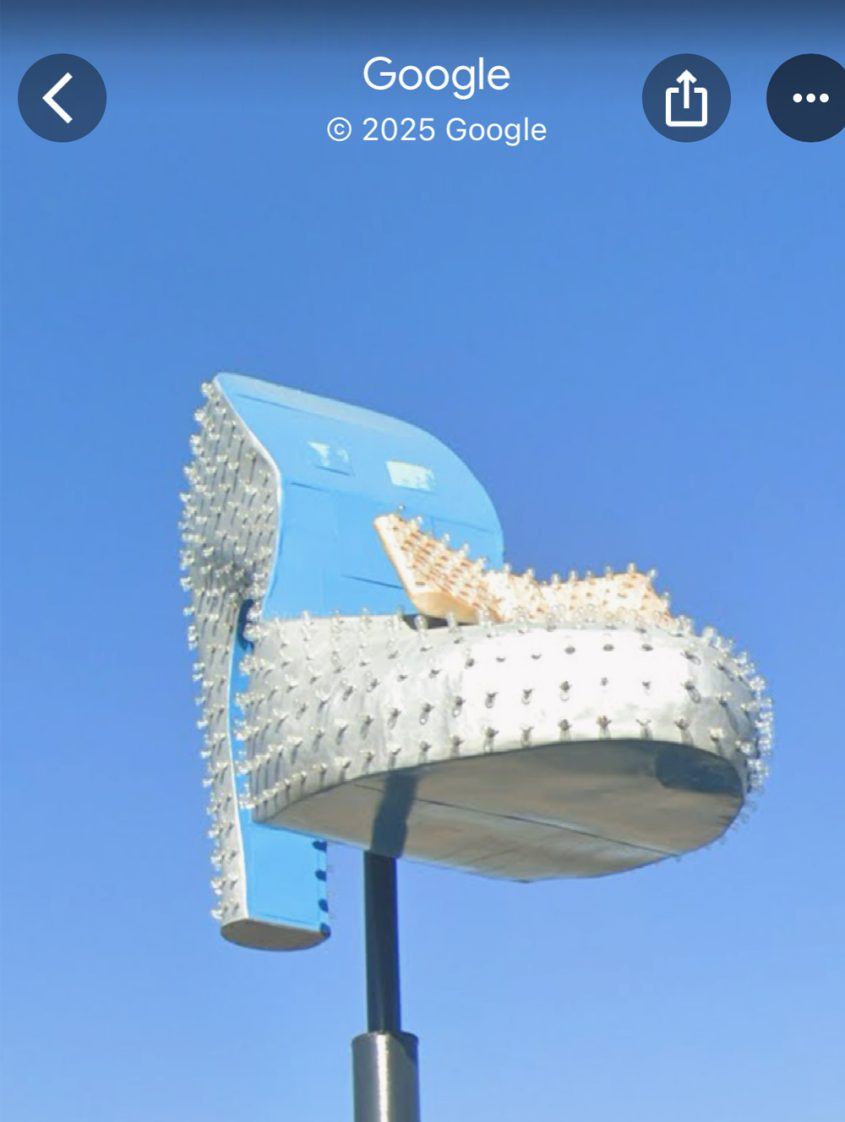 Update (8/20/25): According to Google, the knower of all things, the original Silver Slipper has been spruced up a bit since we took our photo of it. What was red is now blue.