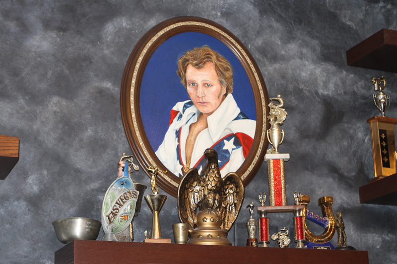 Kelly Knievel’s involvement is apparent, as the decor at Evel Pie is like a shrine to the 1970s icon.