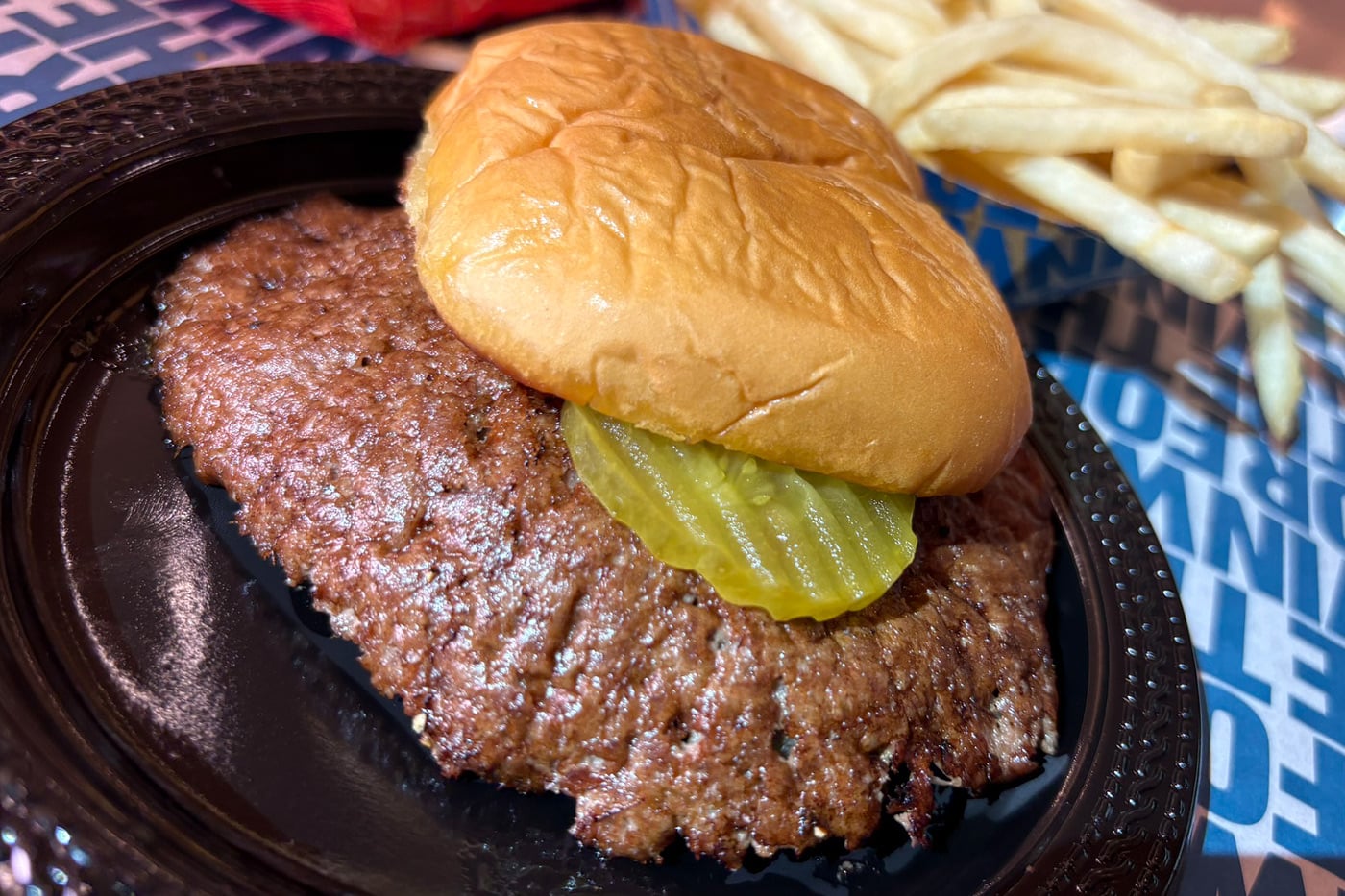 We hate onions. We first asked to have the onions taken off our burger, but knew that would change the flavor, so we allowed them to be smashed, and we’re glad we did. (Cheese would’ve mucked with it too much, so we passed.)