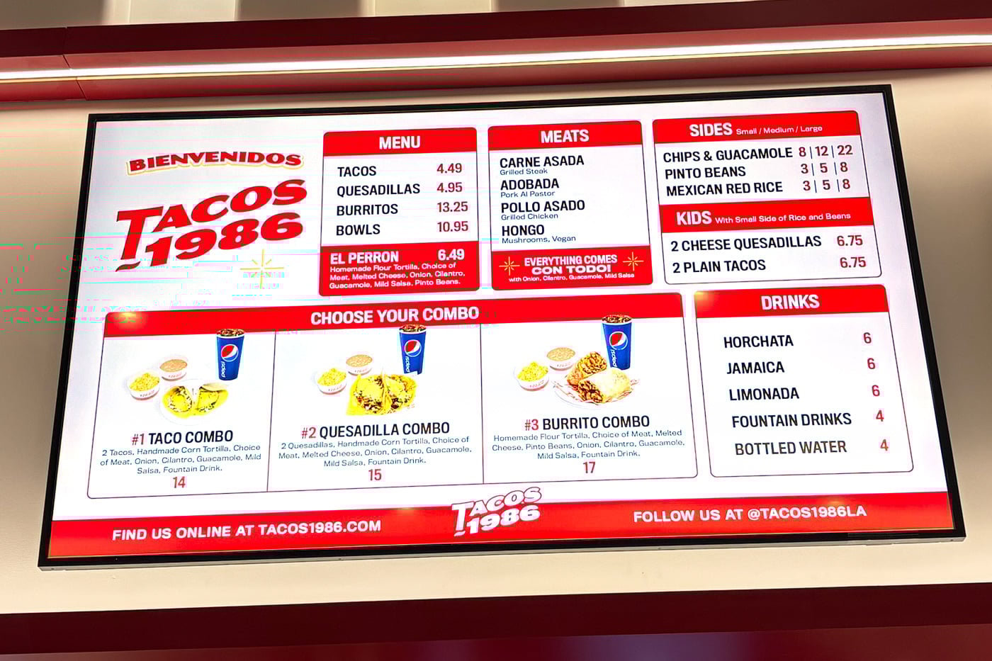 Officially: “A Los Angeles institution since 2018, Tacos 1986 has built a devoted following by elevating the traditional Tijuana-style taco with hand-made corn tortillas, fresh ingredients, and bold flavors. The new Summerlin location will stay true to its roots with a standing-room-only, counter service layout, recreating the sights, sounds and aromas of a classic L.A. street-taco stand.”
