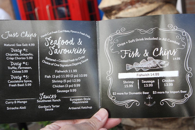 There are several others sauces on the menu (you get two with your fish and chips): Curry & Mango (recommended by an actual British person, and we agree with them), Sriracha Aioli, Southwest Ranch, Gordon’s Tartar Sauce and European-Style Mayonnaise.