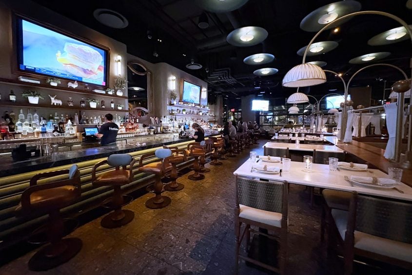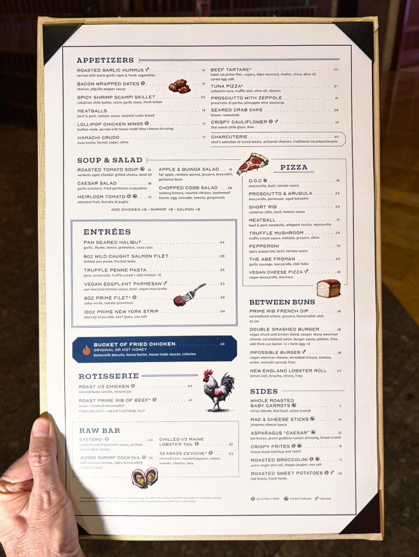 Here’s another line from the news release: “Led by Executive Chef Jason Janson, the menu showcases approachable, ingredient-driven dishes with a refined touch. The menu showcases handmade pastas, fresh seafood, wood-fired pizzas and signature favorites such as rotisserie-roasted prime rib, pan-seared halibut, double-dredged fried chicken served with Chef Janson’s family biscuit recipe and the cult-favorite ‘Abe Froman’ pizza. A raw bar highlights fresh oysters, a half-chilled Maine lobster tail and more, with $1 Oyster Wednesdays offered weekly.”