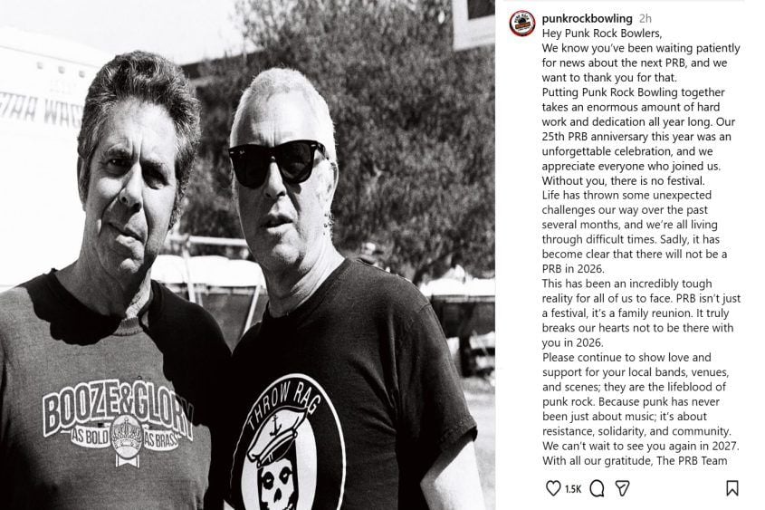 Here’s the post: “Hey Punk Rock Bowlers, We know you’ve been waiting patiently for news about the next PRB, and we want to thank you for that. Putting Punk Rock Bowling together takes an enormous amount of hard work and dedication all year long. Our 25th PRB anniversary this year was an unforgettable celebration, and we appreciate everyone who joined us. Without you, there is no festival. Life has thrown some unexpected challenges our way over the past several months, and we’re all living through difficult times. Sadly, it has become clear that there will not be a PRB in 2026. This has been an incredibly tough reality for all of us to face. PRB isn’t just a festival, it’s a family reunion. It truly breaks our hearts not to be there with you in 2026. Please continue to show love and support for your local bands, venues, and scenes; they are the lifeblood of punk rock. Because punk has never been just about music; it’s about resistance, solidarity, and community. We can’t wait to see you again in 2027.”