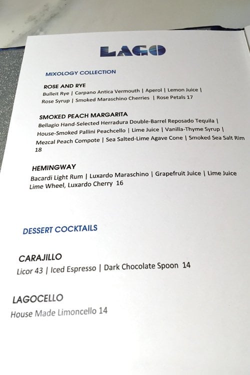 We’d heard about the great dining at Lago, but the signature cocktails made our visit utterly unforgettable.