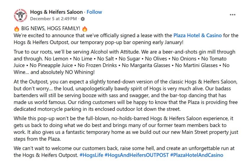 Update (12/2/25): Word is Hogs & Heifers will take over the Sand Dollar Downtown space for six months. As previously reported, Hogs & Heifers is building out a new location not far from Plaza. Hogs & Heifers closed across the street from Downtown Grand on July 6, 2025, after years of conflict with the hotel’s management. You can see Hogs & Heifers progress updates on their Facebook page, including the recent demolition of the Little Hotel.