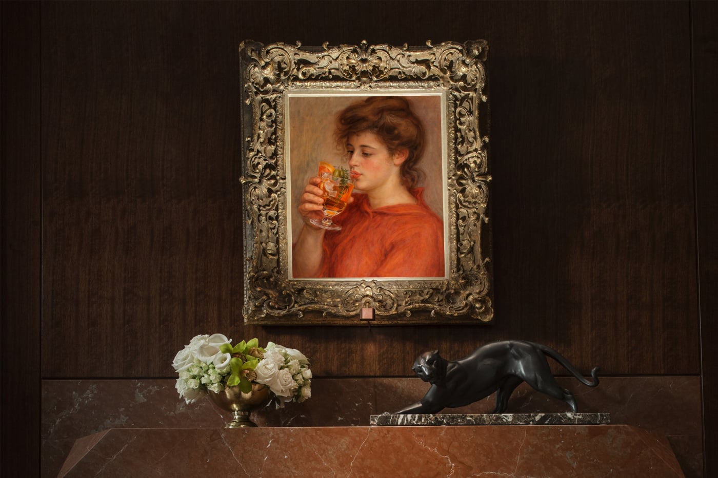You are so gullible! The “Woman in a Red Bodice” could not be drinking a Mariena Mercer Boarini cocktail in 1908 because it hadn’t been invented yet. She would also not have possessed the forearm of a longshoreman. Here’s the original, yawn. Back to art class with you, bumpkin.