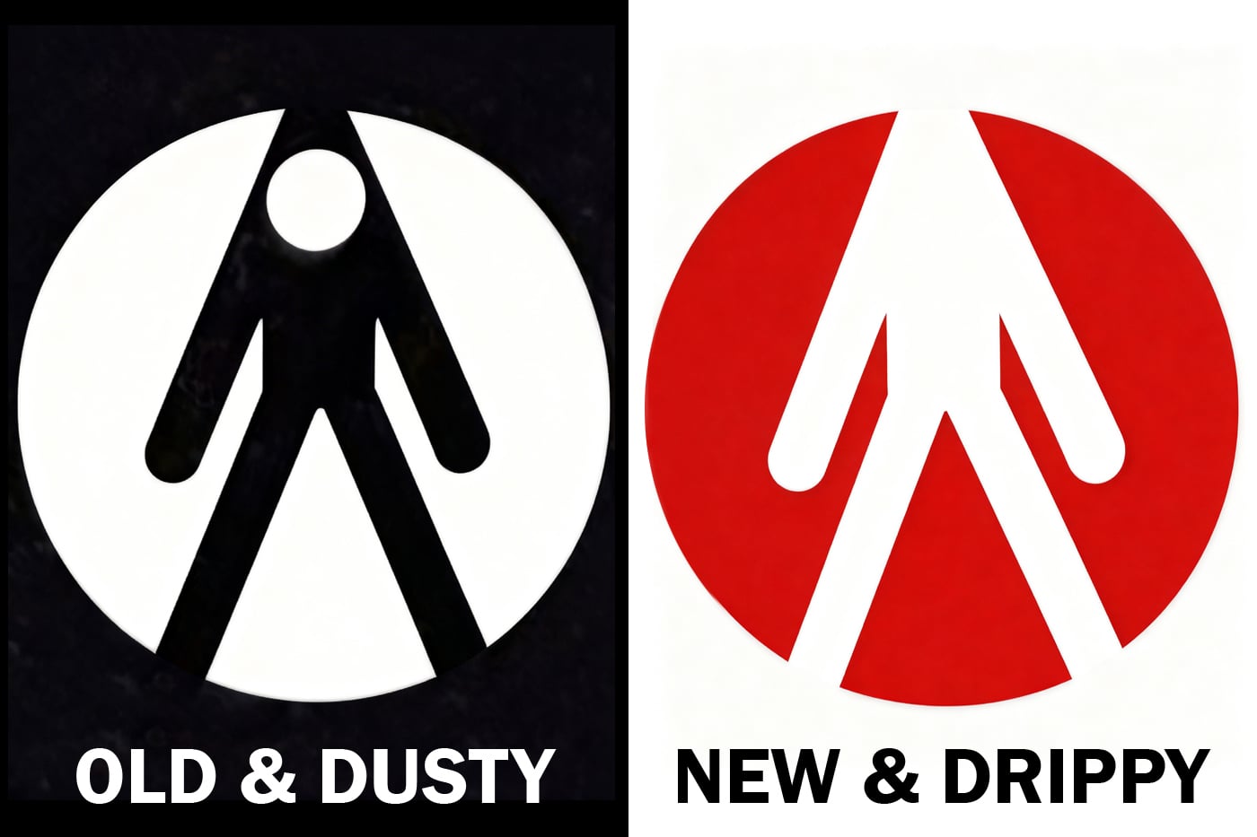 Hartwell shares that the previous logo was seen by some as a person hanging themselves. As an interim step to move away from that problematic subliminal message, Ted Hartwell removed the little guy’s head.